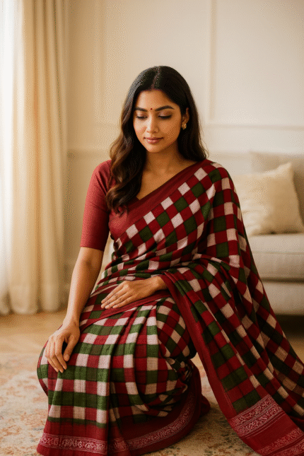 Maroon Charvi Ikat Saree Sambalpuri Cotton