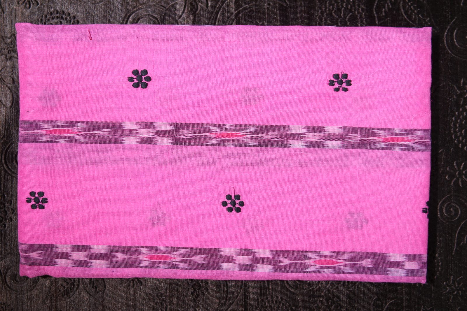 Elegant Pink Ikat Bloom – Premium Sambalpuri Cotton Suit Set with Black Ikat Dupatta