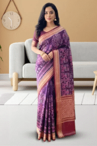 Soft, breathable, and beautifully textured, this saree is designed to drape with natural elegance. Whether styled with antique silver, oxidised, or traditional gold jewellery, it exudes a regal charm suitable for celebrations, ceremonies, and festive evenings.