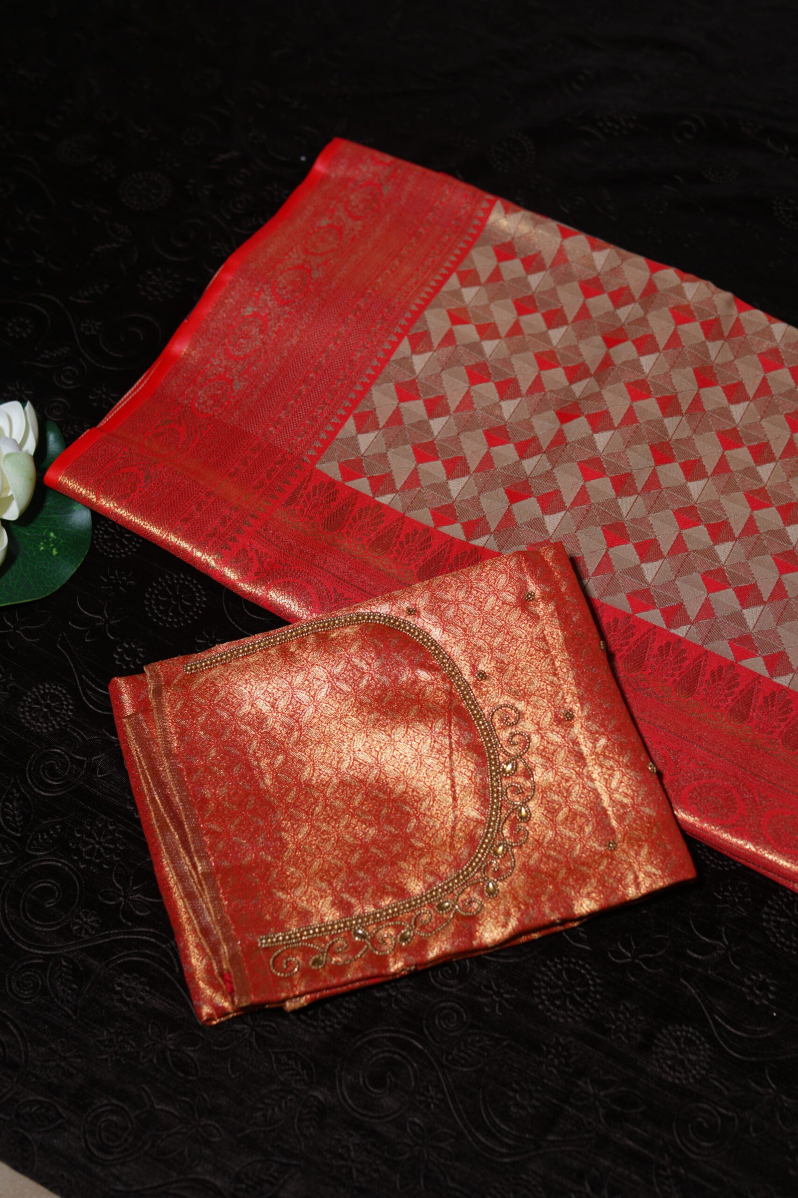 Raktima Viraasat Kanjivaram Fancy Silk(Patta) with Blouse