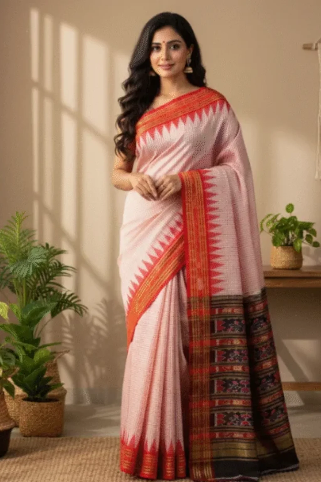 Khandua Silk (Patta) Saree – Pasapalli Checks Body Temple Border