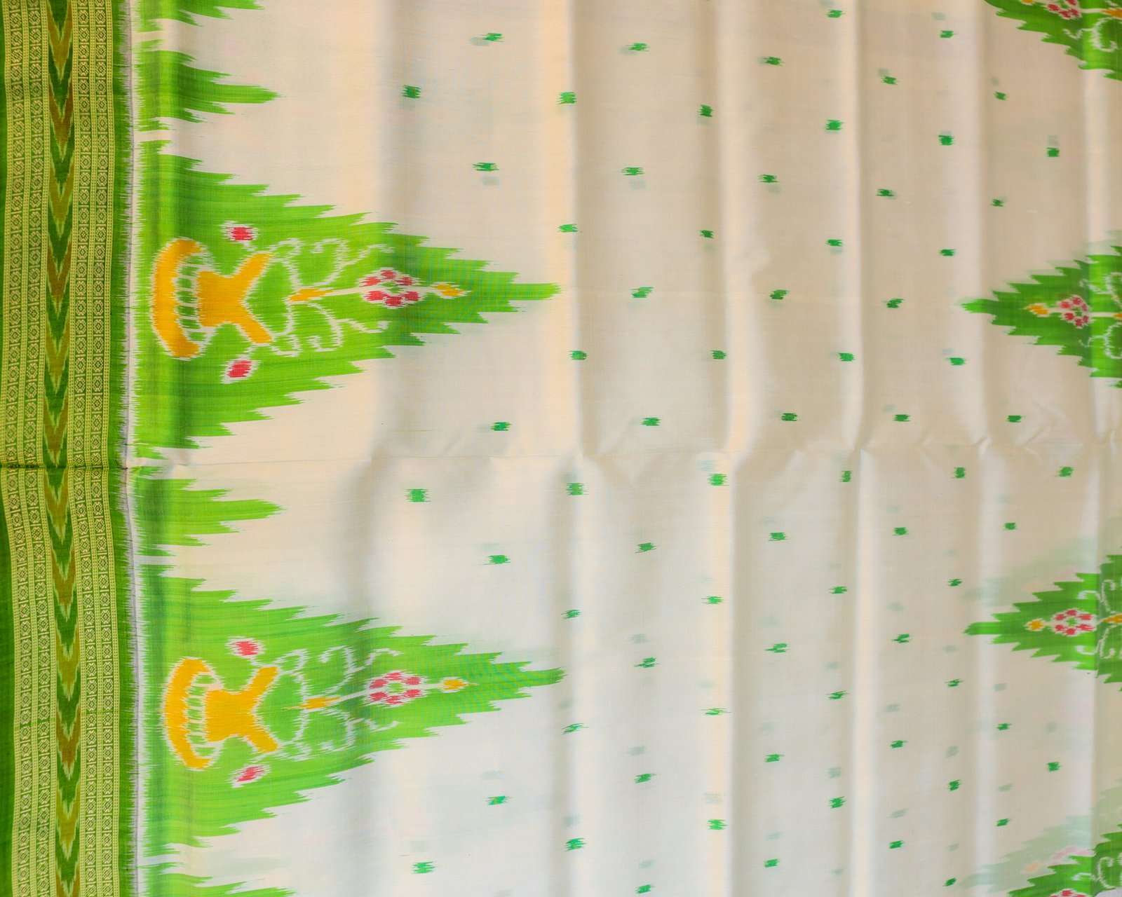 Khandua Silk (Patta) Saree – Temple Border showcases exquisite craftsmanship with traditional temple-inspired motifs. Woven in Odisha, its fine silk texture and vibrant designs embody cultural heritage, elegance, and timeless beauty for every occasion.