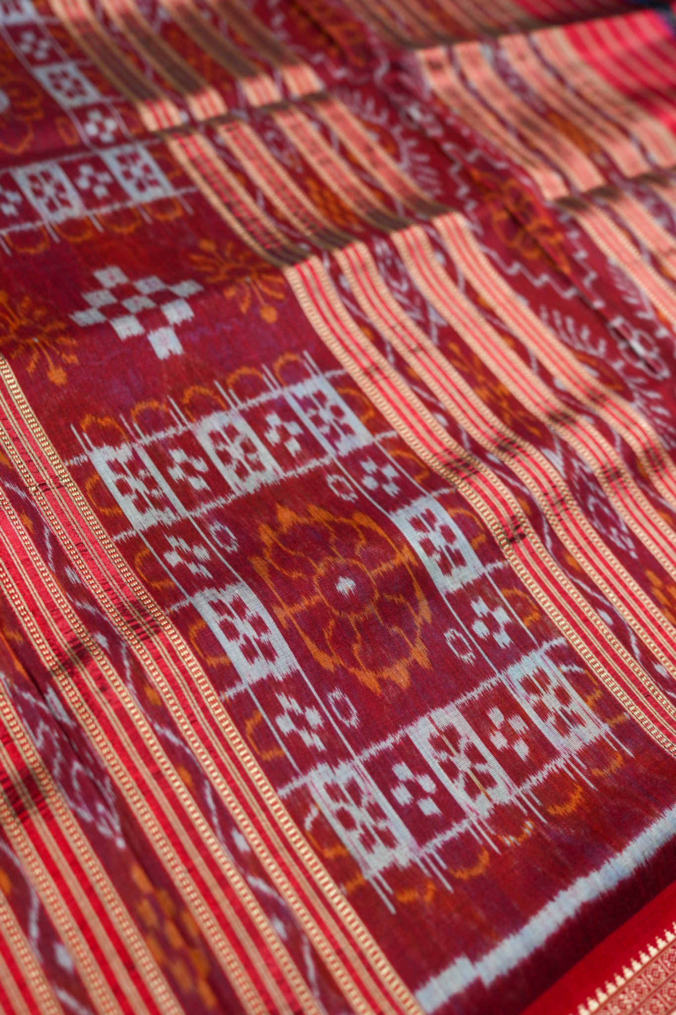 Handwoven Khandua Silk with traditional ikat designs