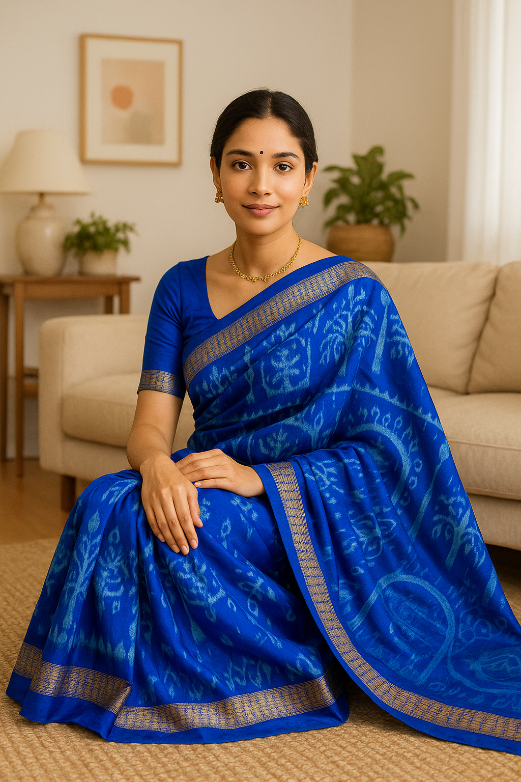 Experience the calm elegance of handcrafted heritage with the NeelShree Ikat Saree, woven in a refreshing, luminous shade of blue. The saree features beautifully detailed Ikat motifs inspired by nature and traditional artistry, created using Odisha’s age-old tie-and-dye technique.