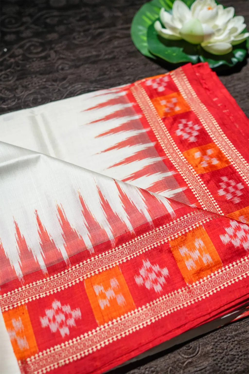 Handwoven Khandua Silk with traditional ikat designs